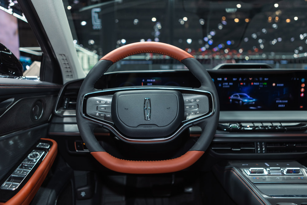 林肯Z不仅在外观设计上令人印象深刻,内饰设计同样也与时俱进。车门一打开,便呈现出多层次的中控台设计,27英寸的中控屏和12.3英寸的仪表成为了视觉焦点。屏幕两侧的弧形造型不仅优化了空间,还为车内增添了环抱感。简洁精致的两辐式方向盘和中控区域,更是让整个内饰显得格外精致。同时,林肯一贯的豪华风格也体现在用料和做工上。