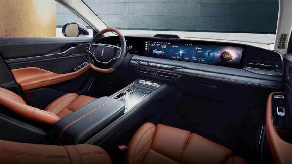 林肯 Z的内饰科技感极强,12.3英寸液晶仪表盘和27英寸大型资讯娱乐显示屏组成的双屏屏幕,不仅覆盖了整个中控台上方的区域,而且还覆盖了乘客座位前的区域,几乎贯穿了整个仪表面板。车内信息娱乐系统采用 Z轿车独有的“林肯星云”人机交互系统,同时方向盘带有触控按钮,让客户享受到科技含量高的座舱。